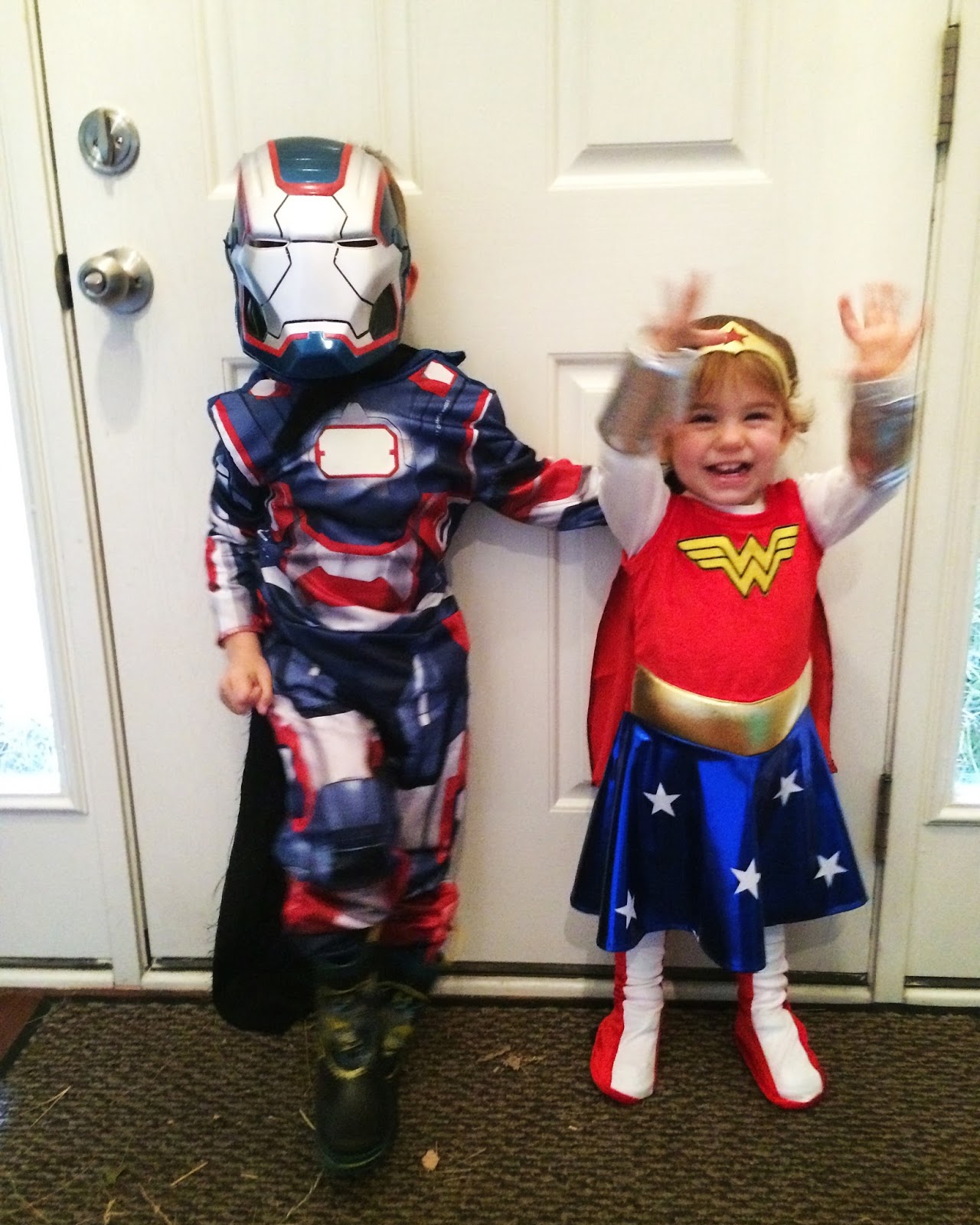 Kate told me she wanted to be a dinosaur out of no where, but only after I had gotten her Wonder Woman costume. But, let's be honest, the two of them as superheroes is pretty much the cutest. And she was extremely happy to be wearing any costume at all, so I'd say it was a win.